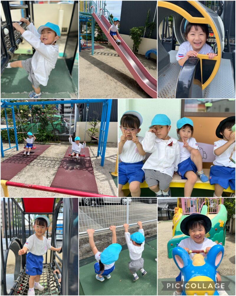 梅組 5.20 つくろうあそぼう 梅組 2024.05.21 つくろうあそぼうのくるくるヘリコプターを 作りました! クレパス、はさみ、のりを使って 説明を聞きながらたのしく完成しました✨ 遊んでみると『くるくるしたー!』 『もっと高いところからやってみたい!』 と活き活きとたのしんでいました💫 お外遊びでは 遊具や鉄棒、草取りのおてつだい‥ 笑顔いっぱいで遊んでいましたよ😊