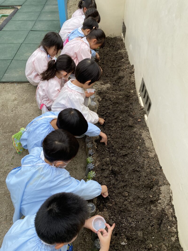 どんな芽🌱が顔を出すかなぁ〜楽しみにしている子どもたちです