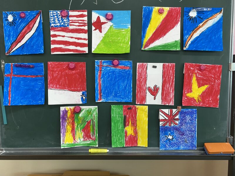 年長組さんのカッコいい旗🏳️⚧️(万国旗)が完成です✨