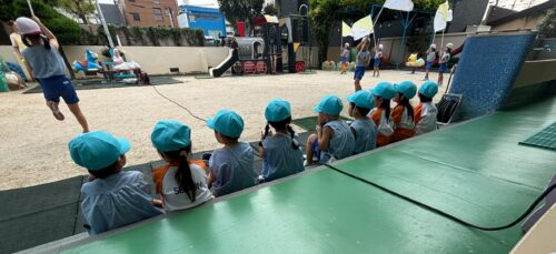 菊組 9/17 松組のカラーガード 菊組 2025.09.17 今日の午後は松組のカラーガードの練習をする様子を見学、応援をしました。 大きな旗を使って、カッコよく演技する松組の姿を真剣な表情で見ていた子どもたち😀 良い刺激となり、明日からの運動会の練習にも力が入りそうです💪