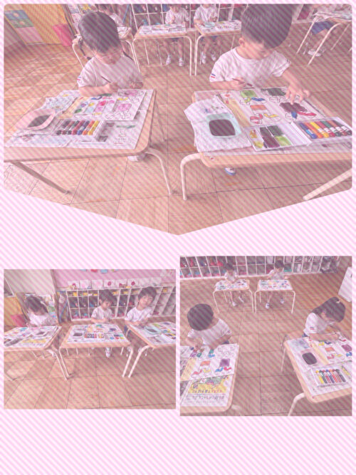 菊組 9/25 えのぐであそぼう 菊組 2025.09.26 今日の『えのぐであそぼう』では、2種類の絵の具を混ぜたら何色になるかを学びました😃 赤➕青=何色? 青➕黄色=何色? 絵の具が大好きな子どもたちは 絵の具を混ぜる前から何色になるかを分かっていて、大きな声で答えてくれる子が多くいました。 同じ色を混ぜても、配合によって明るかったり、少し暗かったりする違いがあることを学ぶと、不思議そうにする姿も見られました。