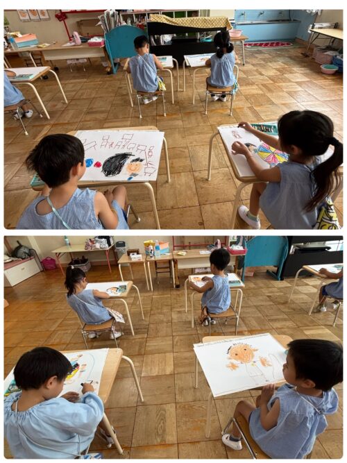 菊組 10/16 印象画『運動会』 菊組 2025.10.16 今日は印象画『運動会』を行いました😀 運動会で頑張ったことや楽しかったことは?➡️心の中でじっくりと考え、描いていきました。 今日はいつもの印象画の2倍の大きさ‼️(大判サイズ)の用紙に描くことに挑戦😃 躊躇することなく、用紙いっぱいに描いていく子どもたちでした。 そして描いたものは、全員『パラバルーン』の演技をしている所でした。みんなで力を合わせて行ったパラバルーンが1番印象に残っていました😃 ⭐️明日はコパンスイミングがあります。