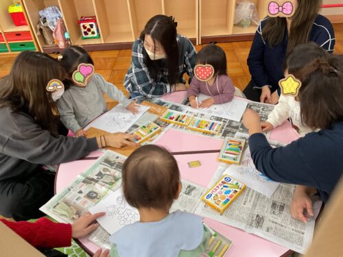 ぬりえやシール貼りなど簡単なものもありますので、ちびっこ教室や園庭開放に作りに来てくださいね。