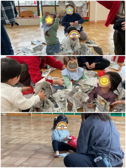 それから新聞遊びをしました。