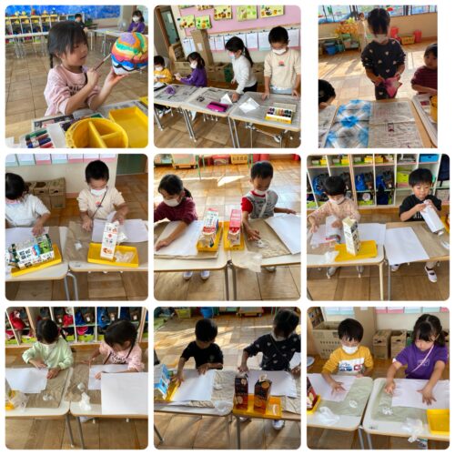 💚年長組では、先生からのお話から一人ひとりが自分で考え作り上げていく作品作りをしています。あれ?これ?っと頭をフル回転している子どもたちです✨
