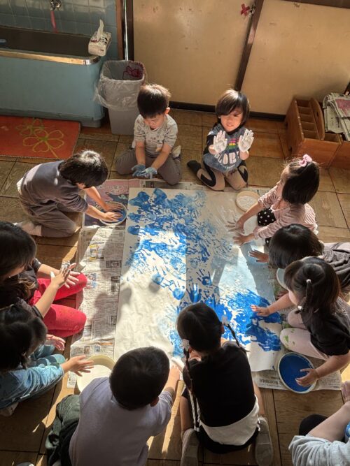 先週に引き続き、今日も絵の具を使って作品づくりをしていきました。☺︎