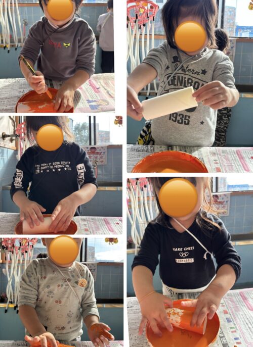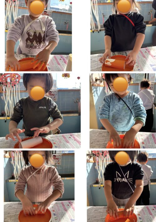 大胆に両手で絵の具をつけて、みんなとてもいい表情で感触を楽しんでいました✨