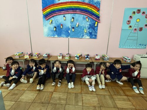 梅組 明日は製作展💚 12.17 梅組 2025.12.18 明日は製作展✨ いつもと違う部屋になっていて、子どもたちはびっくり‼️でした(笑) 様々な作品の置いてある部屋で、いつもみたいに何も考えずに遊んでいいかな? どうなるかを想像して考えて遊んでねと伝えると、静かに座って遊んだり、ゆっくりお友達とおしゃべりをしたり、慎重にそして、静かに遊んでいた子どもたちでした🤍 菊組さん松組さんのお部屋にも行って、作品を見てまわりました♪ 明日は楽しみにしていた製作展^ ^ お子様といろいろな話をしながらゆっくりご覧ください〜
