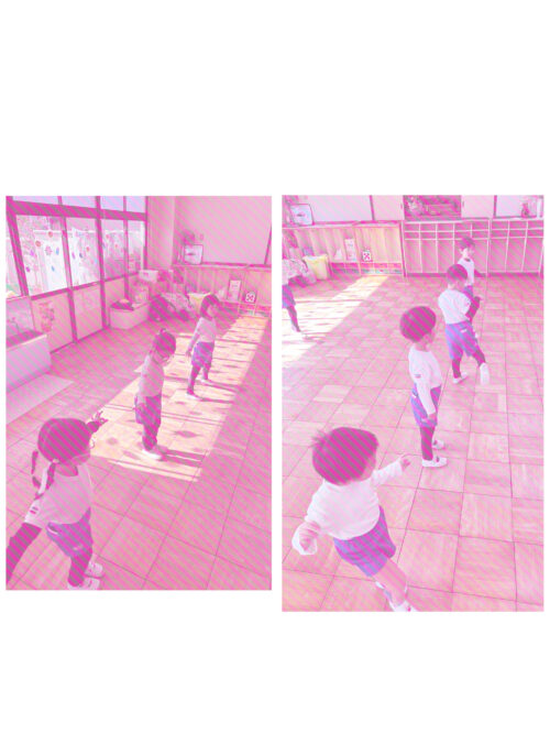 鉄棒では前回りに挑戦‼️最初はおそるおそる行なっていた子も数回繰り返すと、1人でクルりと回ることができました。