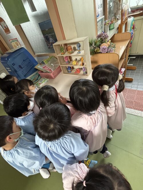 みんなで廊下に飾ってある様々な種類の鬼をみにいきました。