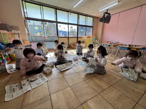 梅組 豆づくり👹 1.28 梅組 2026.01.302026.02.01 今日は10人でのスタートとなりました。 風邪症状や熱があったり、腹痛または下痢嘔吐の場合は、病院を受診してくださいね😣 今日はみんなで節分の話をしてから、新聞紙で豆を作っていきました。 ぎゅーっと力を入れて、丸丸のが難しそうな子どもたちでした^ ^ 鬼に向かって作った豆をみんなで投げて練習しました✨ 節分の日を楽しみに、また不安そうにしているこの頃の子どもたちです☺︎