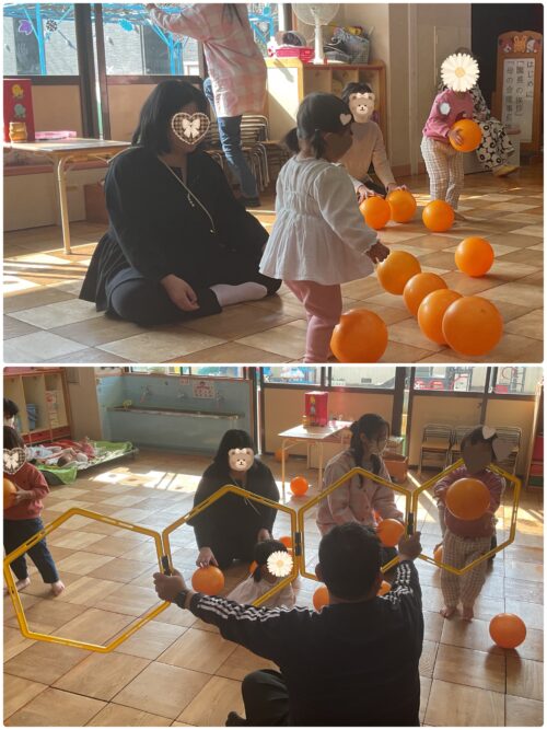 はじめはボール遊びです。