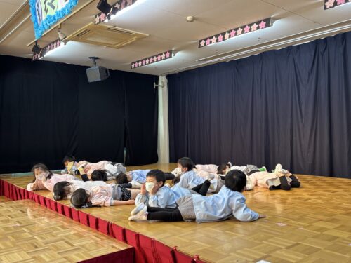 梅組 明日は発表会💖 2.26 梅組 2026.02.262026.03.01 今日は朝から舞台で松組さんと一緒に朝の会を行いました☀️ 松組さんと一緒に朝の会をする子どもたちはとてもいい表情をしていました🧡 そして、みんなで大きな声で出席カード、漢字の授業をしたりとても楽しんで行いました! その後も舞台でおやすみ〜をしたり、お辞儀をしたり、歌を歌ってとても楽しい時間を過ごしました♪ 明日に向けて準備をしたり、昨日できなかった掃除デーもきょう一生懸命に頑張っていました✨