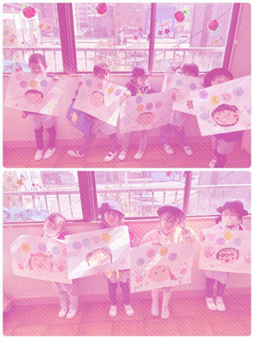 菊組 2026.3.10 おもいで帳の表紙作り(続き) 菊組 2026.03.10 昨日の続きで『おもいで帳の表紙作り』を行いました😀 クレヨンで『おもいで』の文字と、自分の顔を描き、好きな色を選び、手形スタンプもしました。 手形スタンプを上手に押すことが出来ると、『いいねー😀』と、とても嬉しそうにする子どもたち。 自分の顔などを表紙に貼ると、満足そうに眺める姿が見られました。 明日は印象画をつづっていきます😃